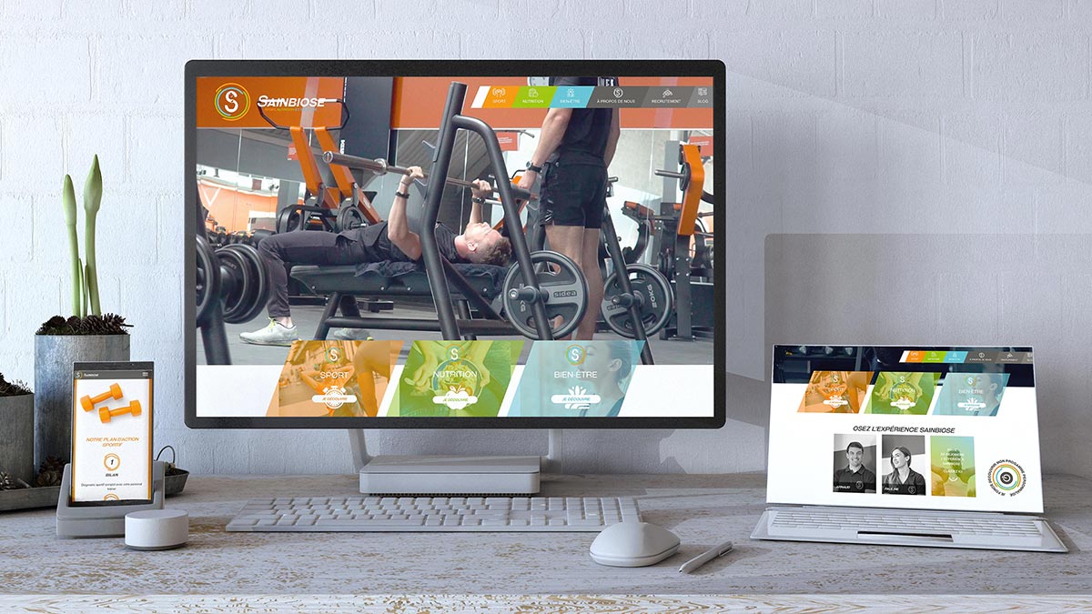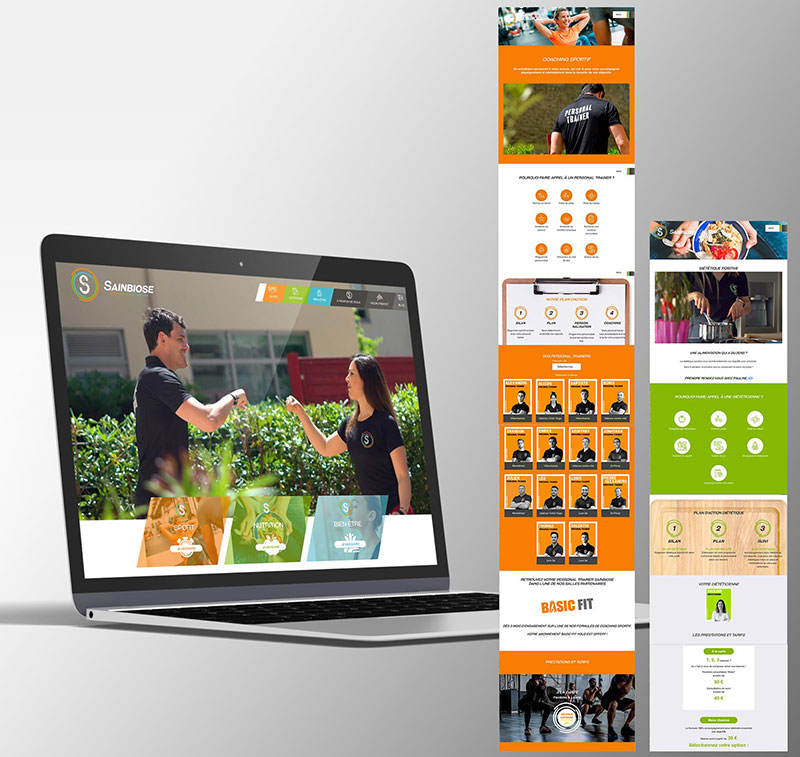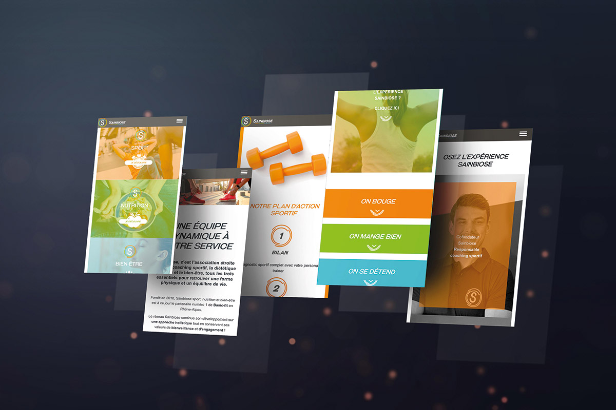 VALCOM résalise le site internet de Sainbiose, coaching sportif, diététique positive et bien-être. Charte graphique, illustration, développement.