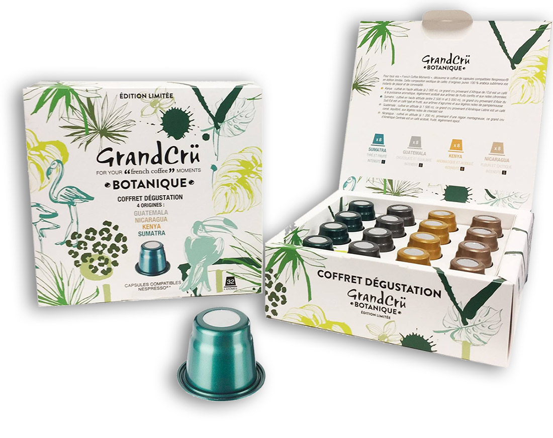 En 2018, UCC COFFEE lance le coffret Grand Crü Botanique, une nouvelle gamme de cafés exotiques. Valcom a conçu le logo et le design de ce coffret édition limitée.